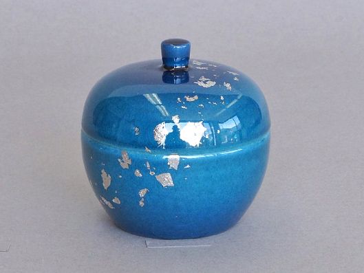 九谷焼 ミニ骨壺 十角型 青粒鉄仙 北原利夫 作